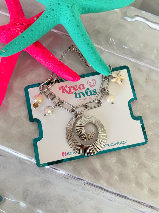 Pulsera caracol en espiral plateada o dorada