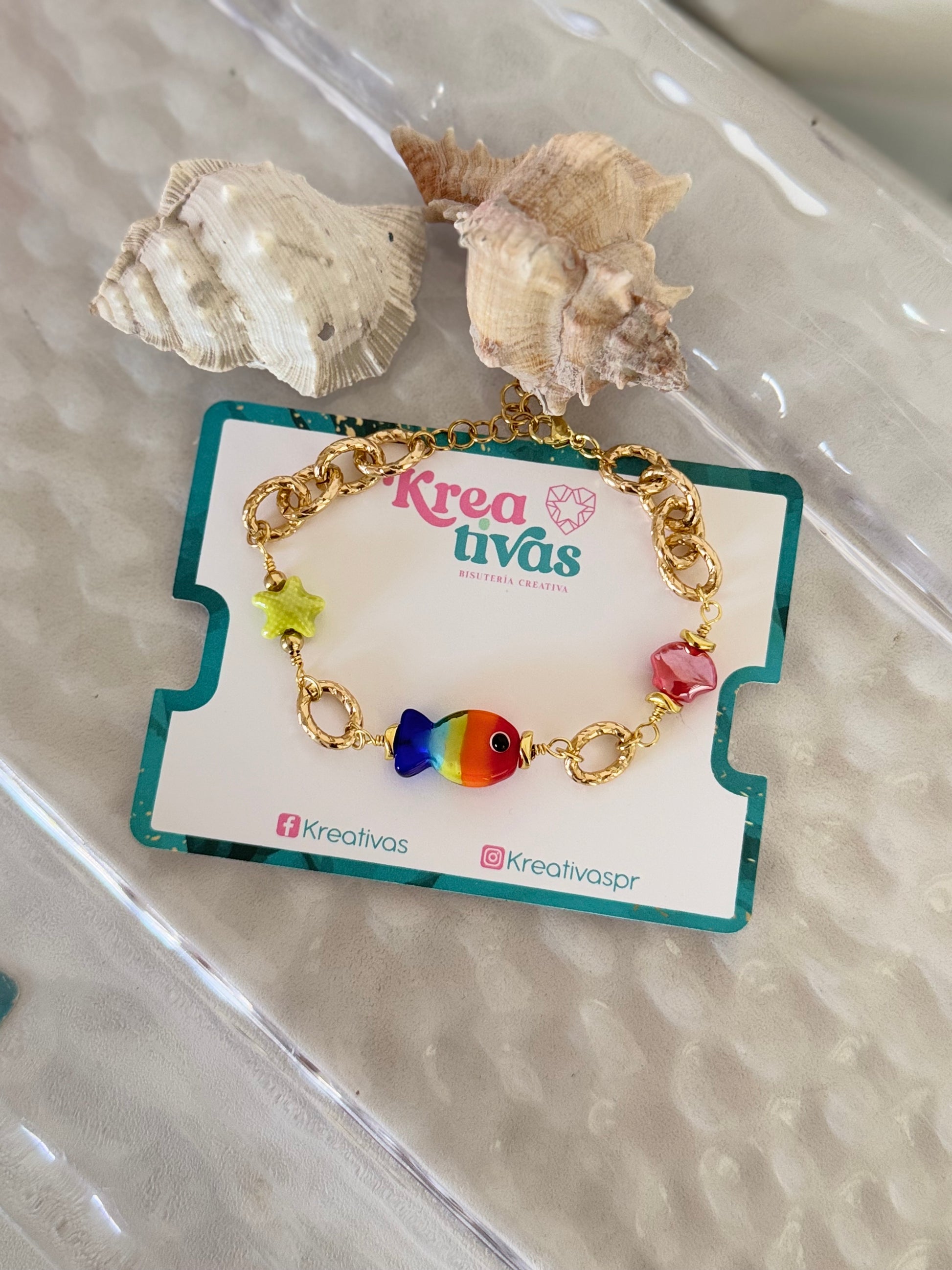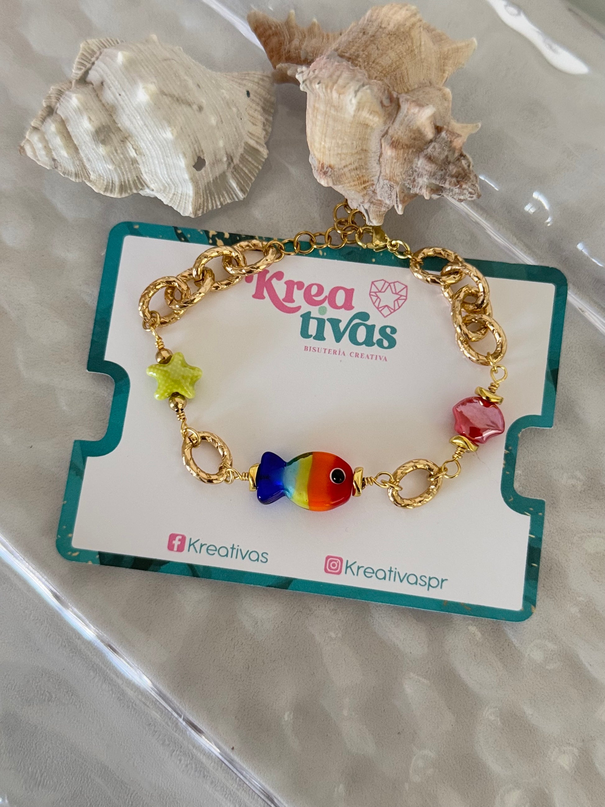 Necesitas esta pulsera en tu vida 😱🤩 Alambrada a mano con pecesito multicolor súper trendy